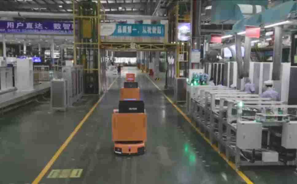 为车载冰箱物流配送打造的智能解决方案,,,,包含产中物流通过潜伏举升AMR搬运至线边,,,,产后成品物流智能仓储,,流程包含产中物流智能齐套入库,,,线边安灯叫料AMR智能配送至线边,,,成品入库、、出库,,,通过无人堆高车机器人,,,,智能仓储管理替代人工作业管理,,,实现更高存储、、更高效率、、、更具柔性化的解决方案。。