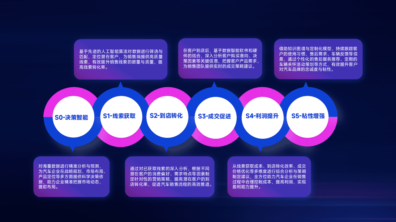 通过拓宽潜在客户来源、、、优化线索分配并提高到店转化率,,以增强销售效率。。。。同时,,,利用线索数据不断优化分析模型,,,有效提升转化率,,扩大营销影响力。。